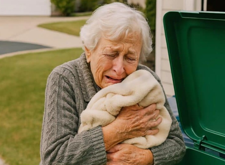 J’ai vu par hasard ma belle-fille jeter à la poubelle la couverture pour bébé que j’avais tricotée de mes propres mains pour mon petit-enfant. Instinctivement, je l’ai récupérée dans le conteneur — et c’est à cet instant précis que j’ai senti quelque chose de dur dissimulé dans l’épaisseur du tissu.