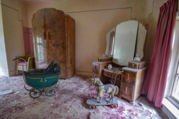 Les indices indiquent que le lieu a été déserté dans les années 1950 — notamment grâce à une vieille gazette datée de 1950 et au style des objets retrouvés. Les clichés de Slader capturent parfaitement cette atmosphère, avec des jouets d’enfants intacts, une poussette abandonnée, et un mobilier figé dans le passé.